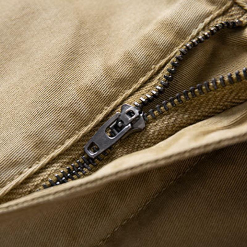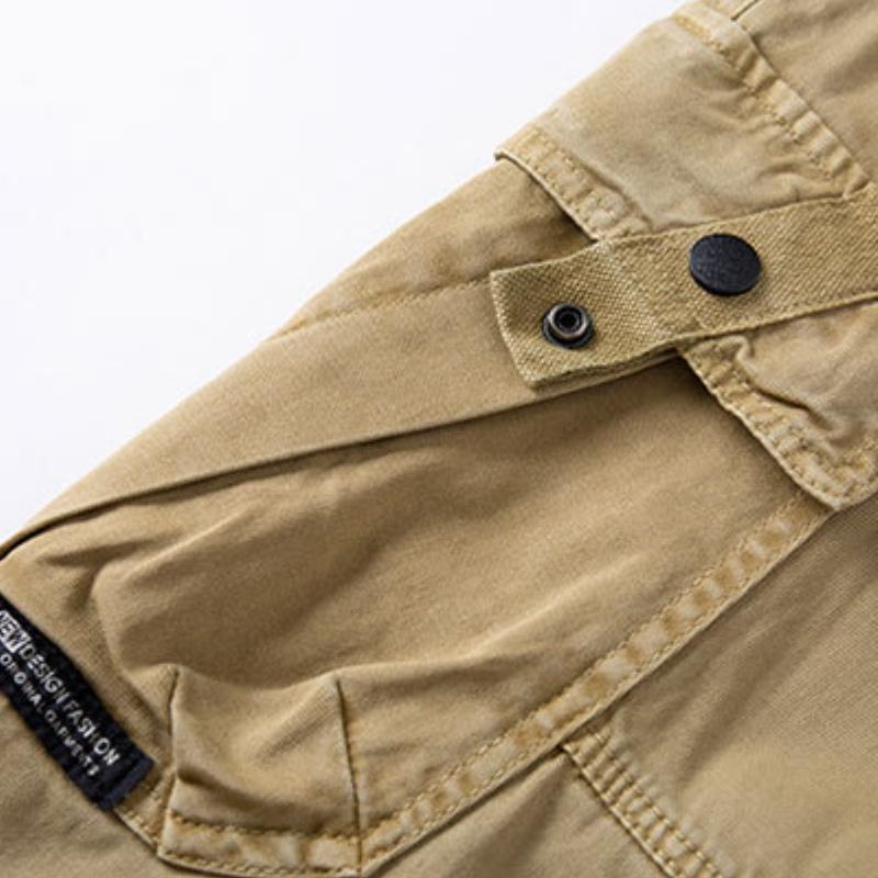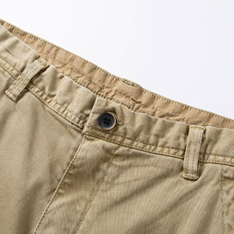 • Cargo Pockets: Two flat-front thigh pockets with secure button flaps for added storage.