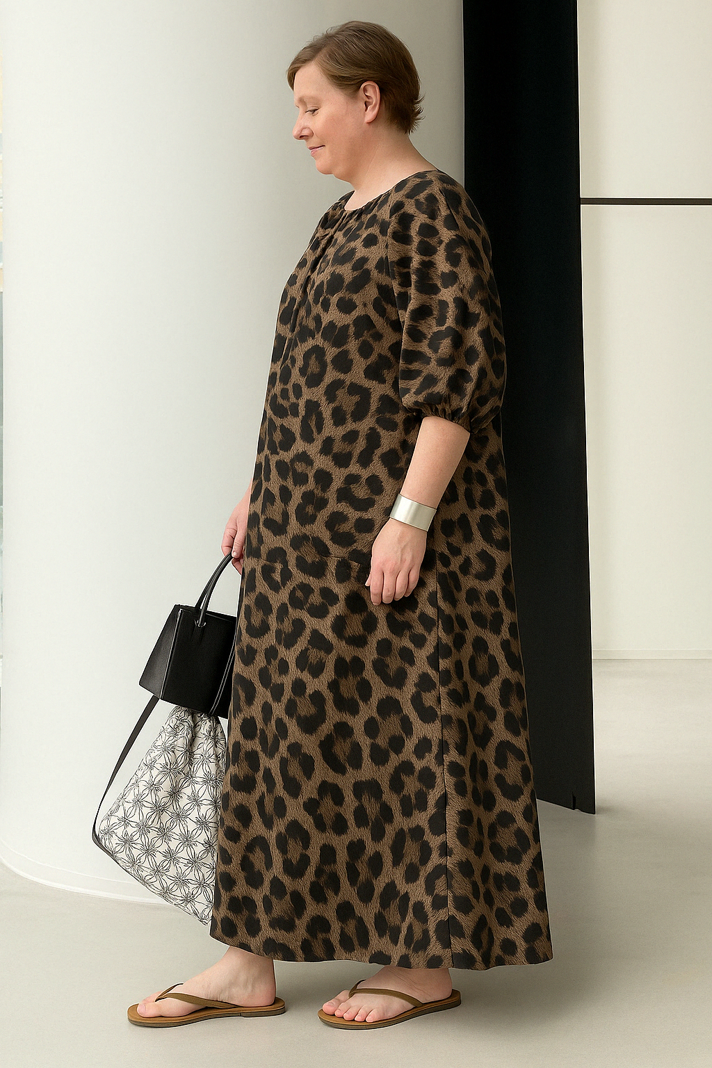 This dress brings that bold, empowered feel without giving up an ounce of comfort. With its striking leopard print and easygoing shape, it’s made for days when you want to look put together—but still feel like yourself. Whether you’re heading out or keeping it low-key, this one does the job with zero effort.