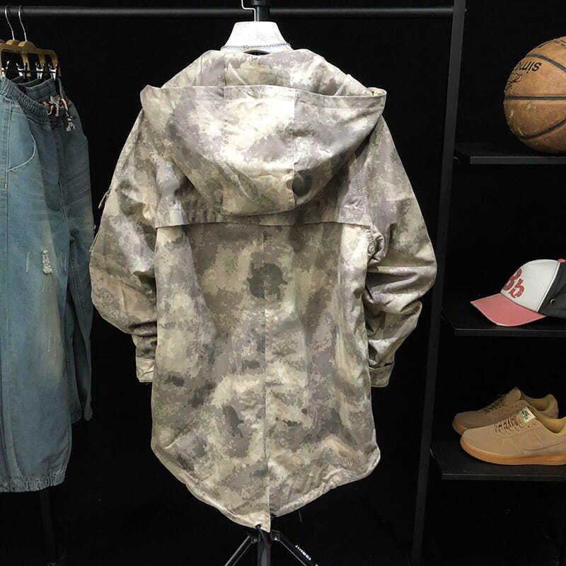 This Men's Camouflage Mid-length Hooded Trench Coat is designed to keep you comfortable, stylish, and protected, making it an excellent addition to your outerwear collection.