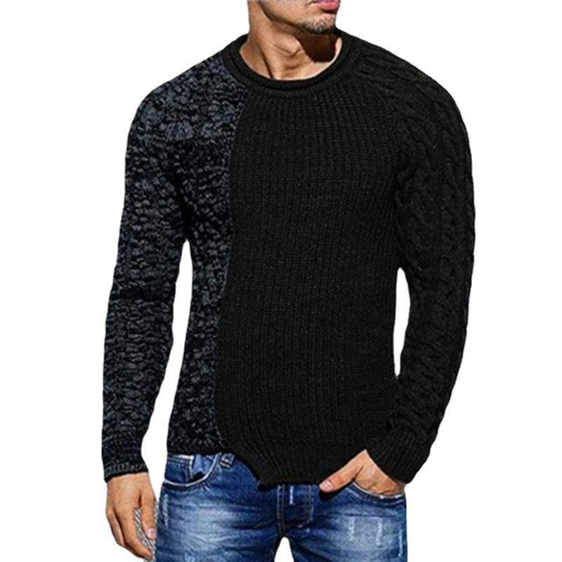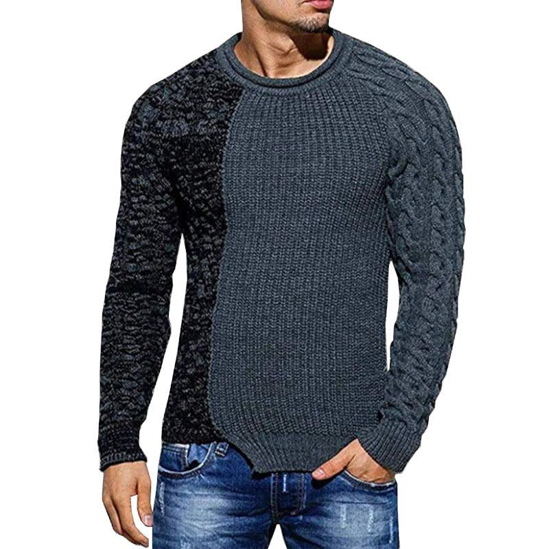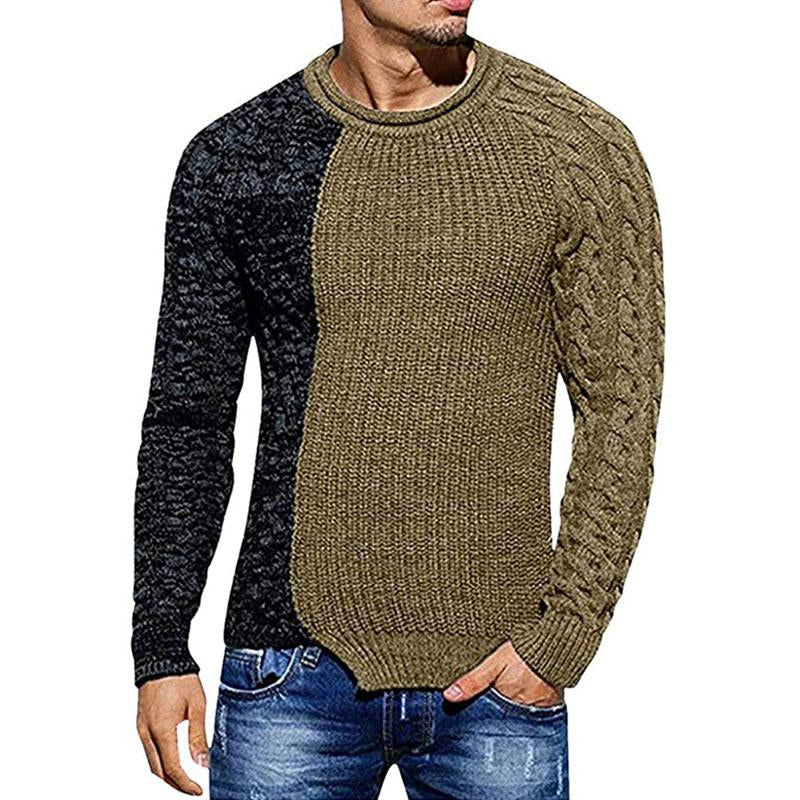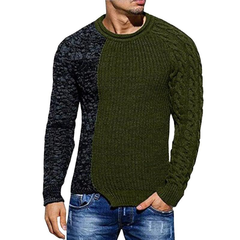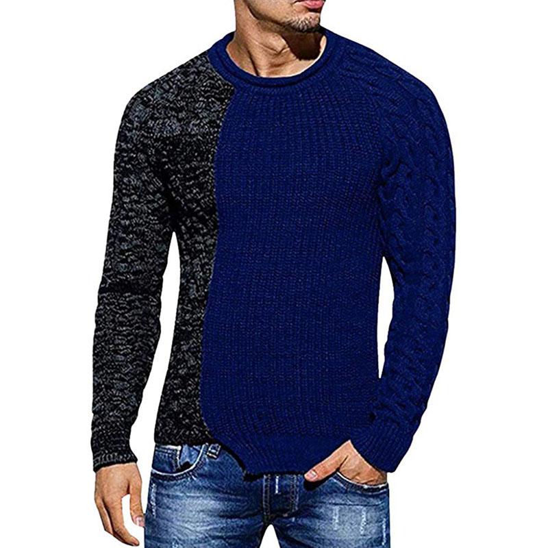 Product Description: Men's Casual Round Neck Colorblock Long Sleeve Knit Sweater