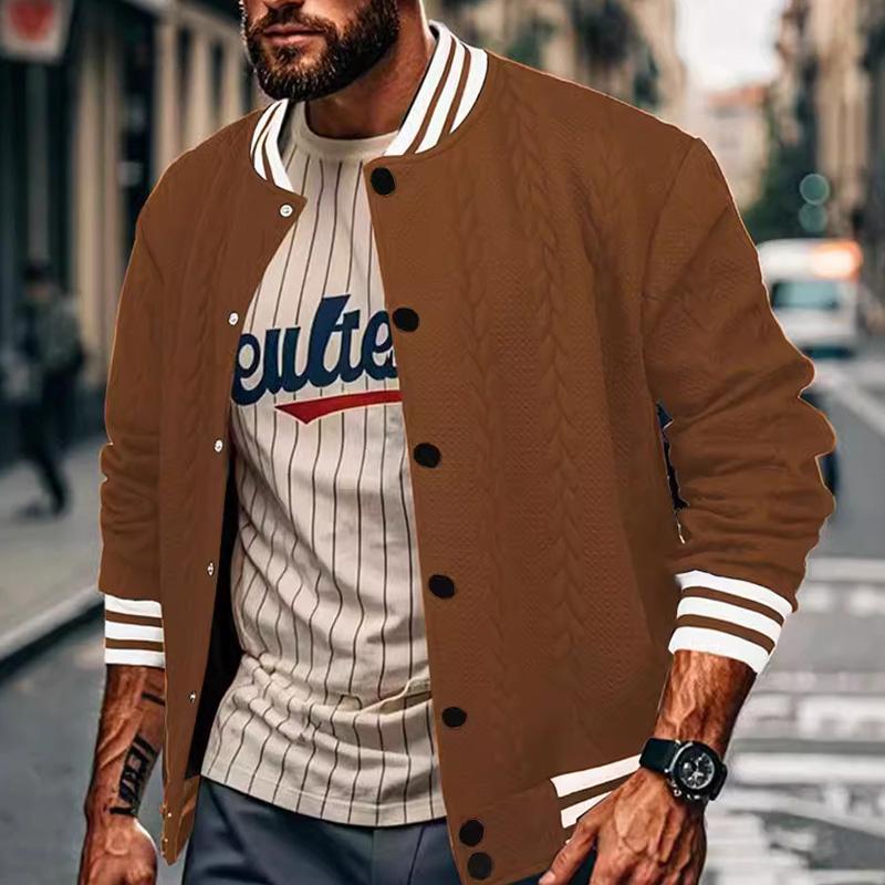 Men's Casual Single Breasted Cardigan Baseball Jacket