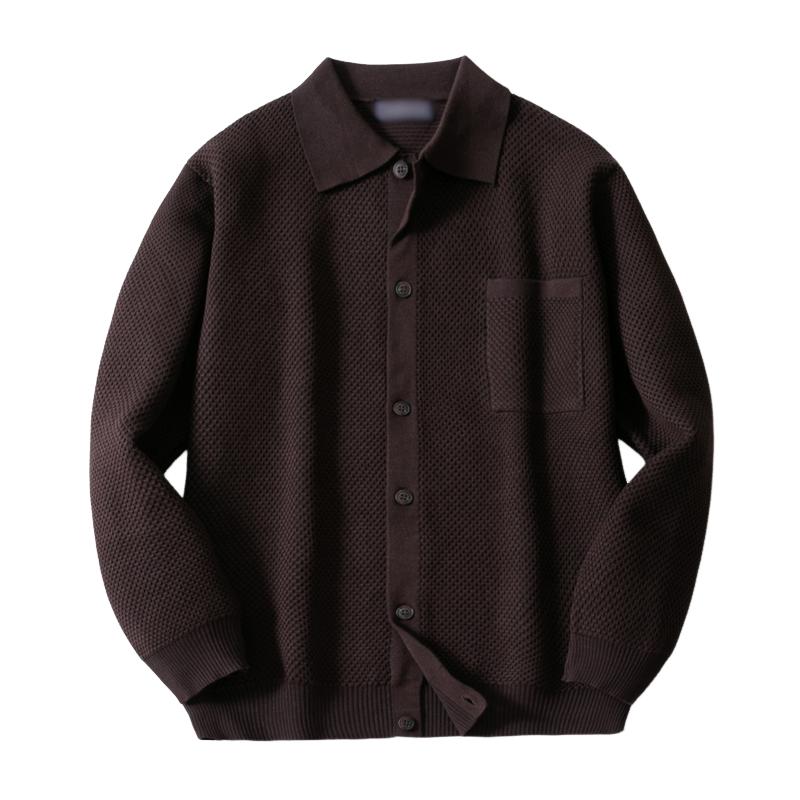 Men's Casual Solid Color Lapel Patch Pocket Knitted Cardigan 79317999M