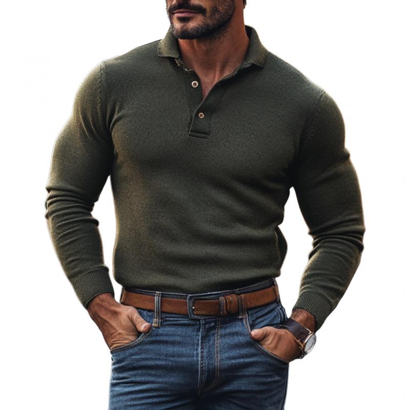 Product Name: Men's Casual Solid Color Lapel Slim Fit Knit Polo Sweater