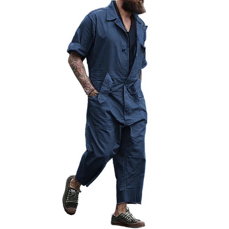 Men's Casual Solid Color Multi-Pocket Belt Jumpsuit – a versatile and stylish piece that seamlessly merges comfort with contemporary fashion