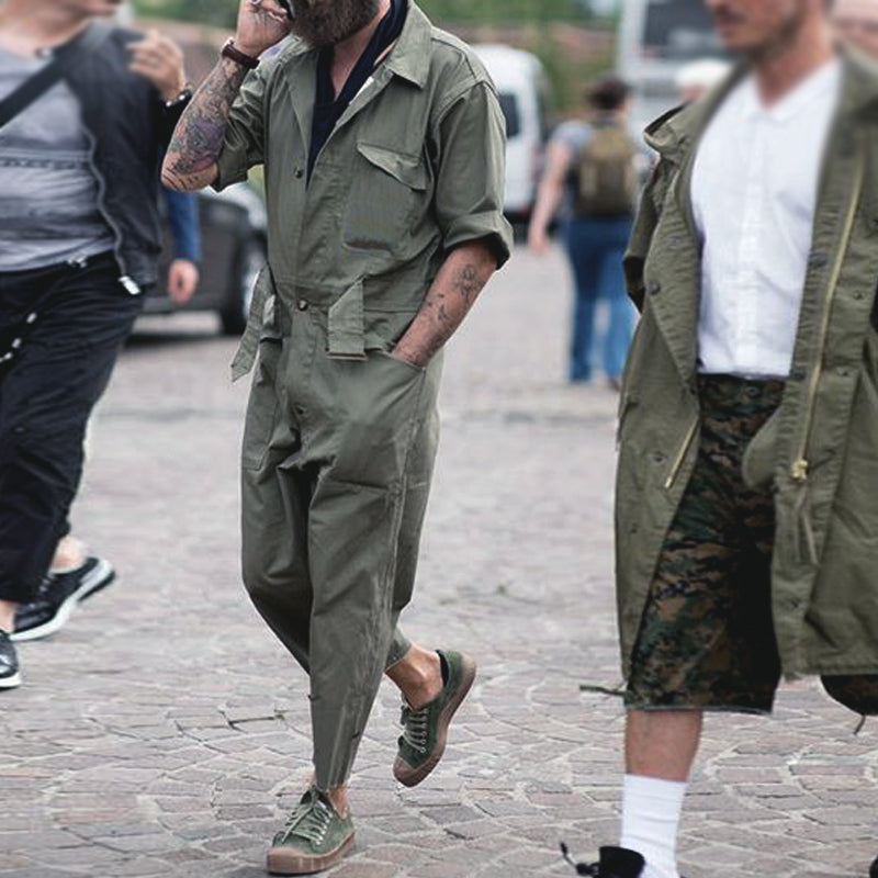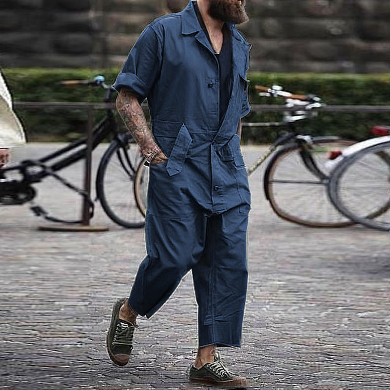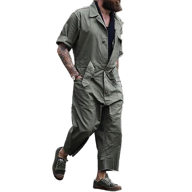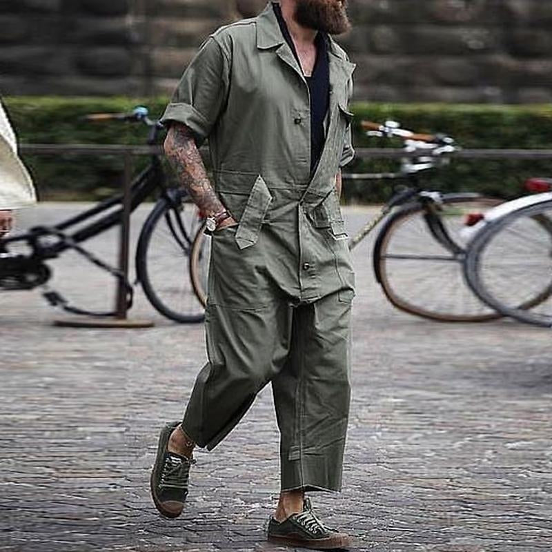 Introducing our Men's Casual Solid Color Multi-Pocket Belt Jumpsuit, a versatile and functional piece designed to combine style with practicality for modern-day urban adventurers.