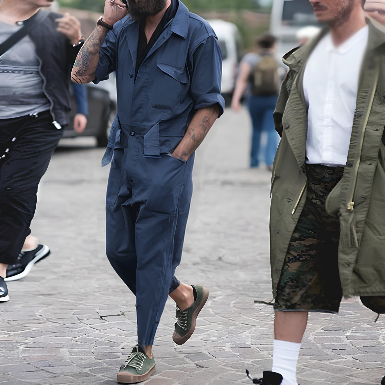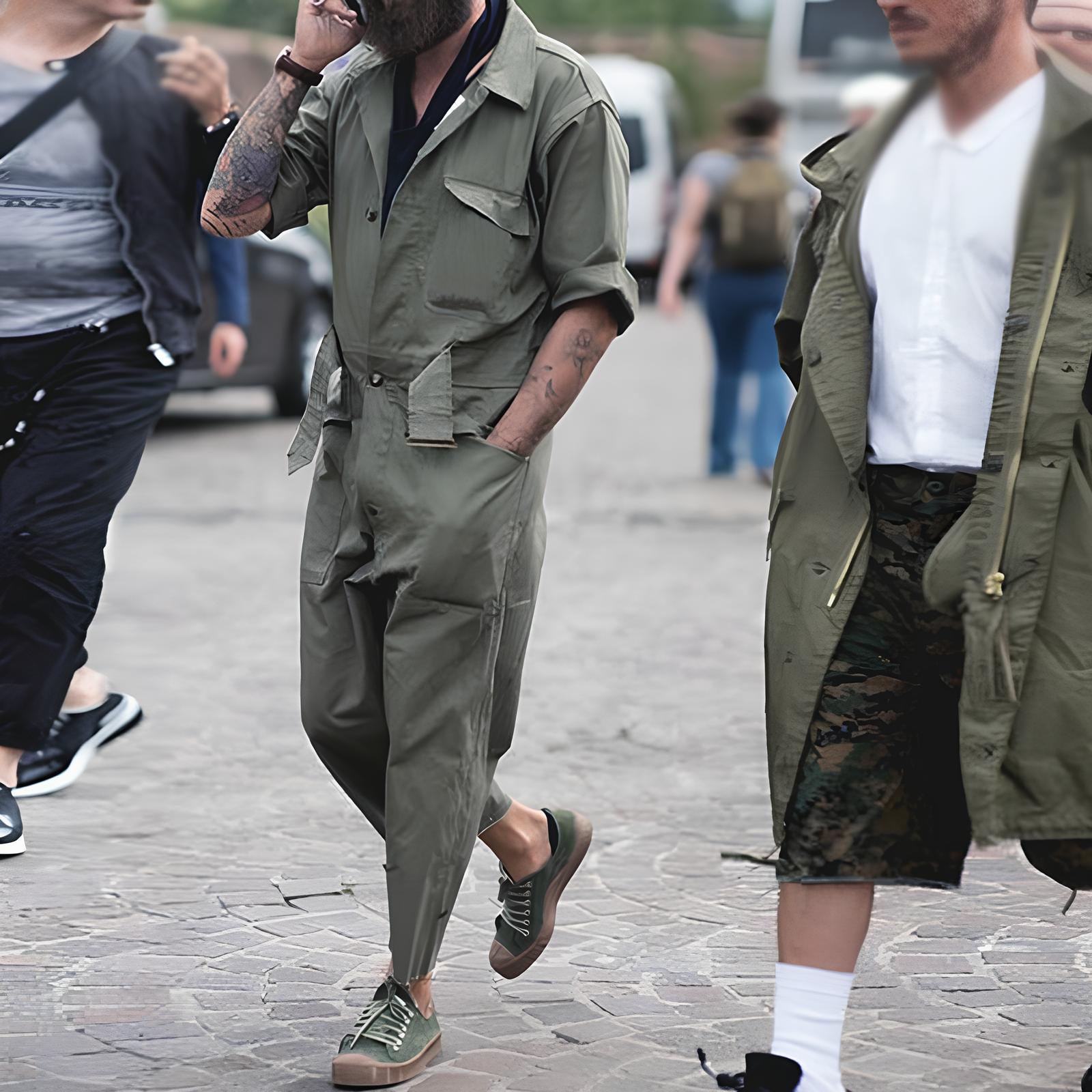 With its lightweight yet durable fabric construction, this jumpsuit is suitable for wear throughout the year, offering versatility for layering in cooler seasons. Ideal for outdoor adventures, travel, or everyday wear, our jumpsuit combines functionality with contemporary style for the modern man on the move.