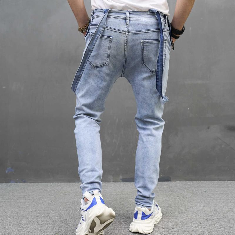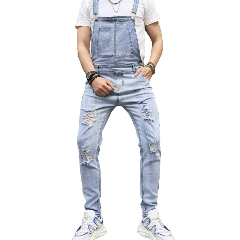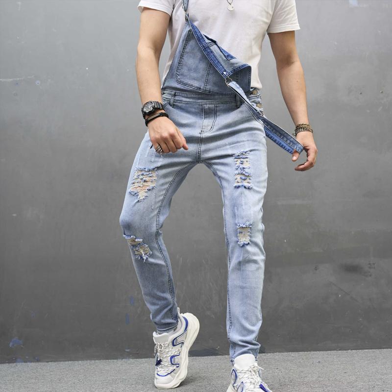 Men's Casual Solid Color Washed Ripped Denim Overalls 04755632Y