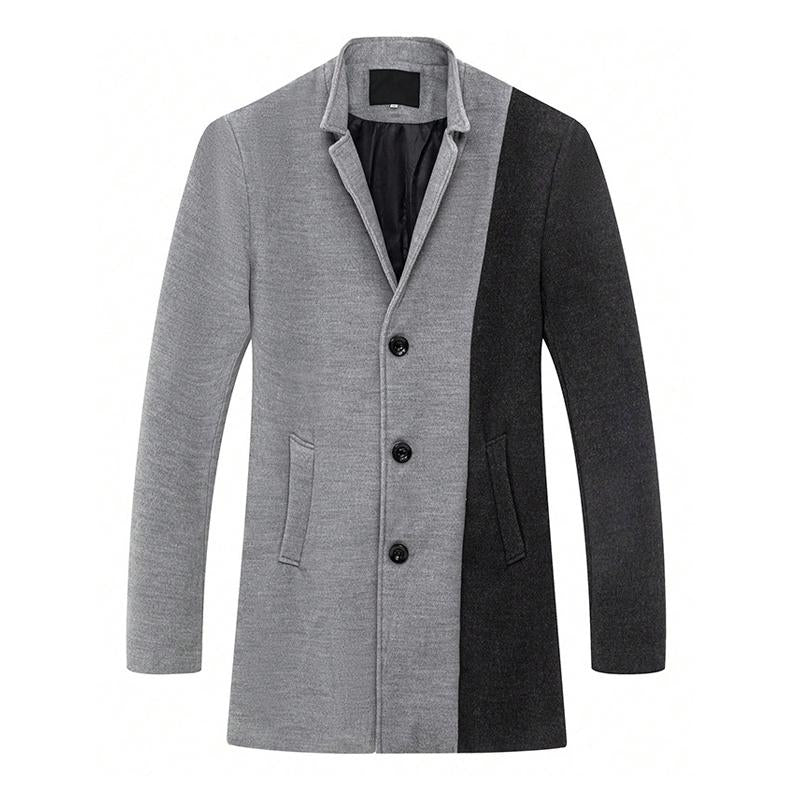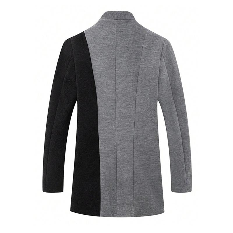 Men's Colorblock Single-Breasted Casual Mid-Length Coat
