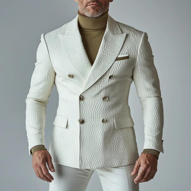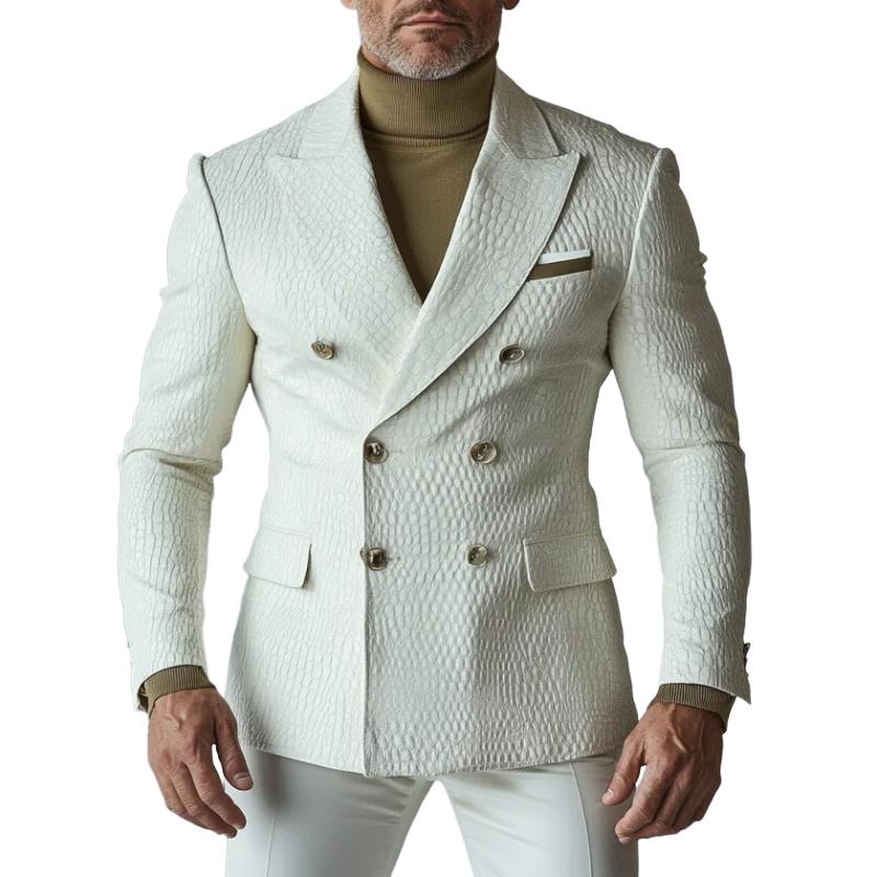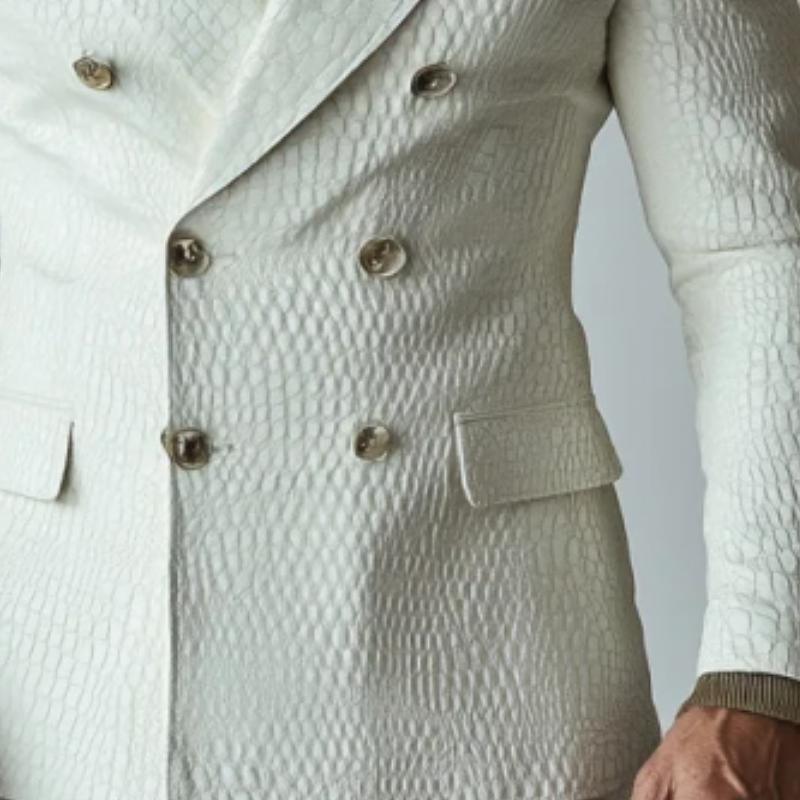 The Men's Fashion Check Embossed Lapel Single Breasted Leather Blazer is a standout piece that effortlessly combines luxury and versatility, making it an essential addition to the wardrobe of any modern gentleman.