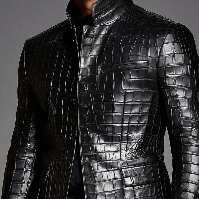 The Men's Fashion Check Embossed Lapel Single Breasted Leather Blazer is the perfect balance of timeless sophistication and modern style, making it an essential piece for anyone looking to elevate their fashion game.