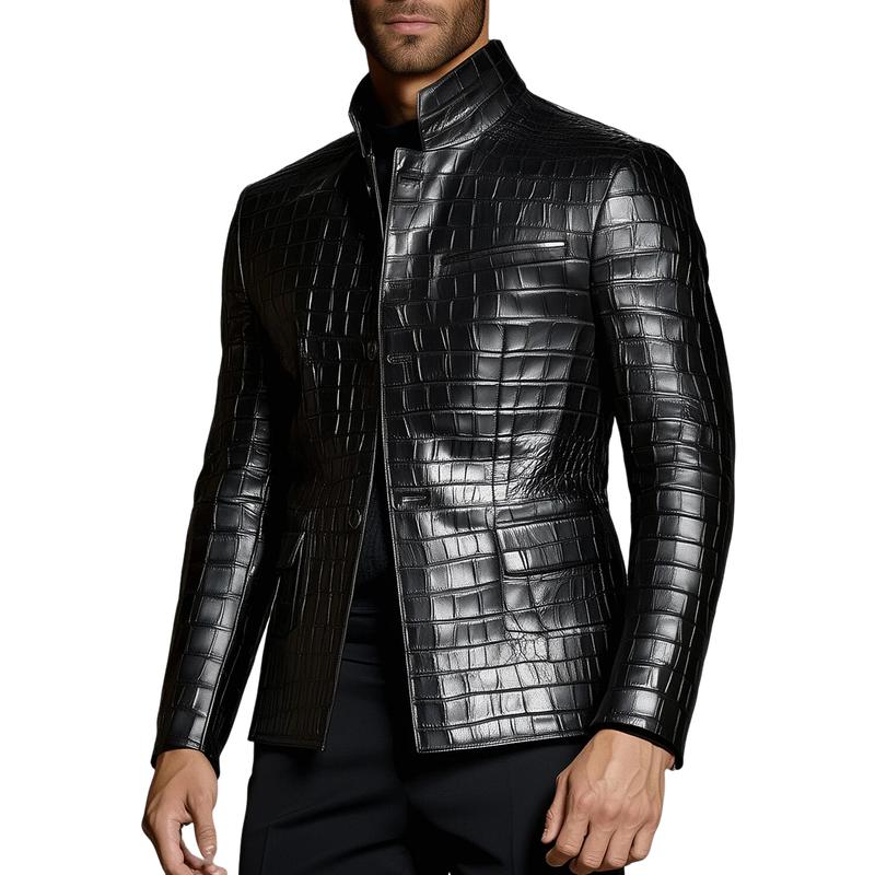 The Men's Fashion Check Embossed Lapel Single Breasted Leather Blazer is a sophisticated and stylish addition to any wardrobe. Featuring a unique check-embossed pattern on premium leather, this blazer combines traditional craftsmanship with modern fashion. It is perfect for adding a sharp, distinctive look to both casual and semi-formal outfits.