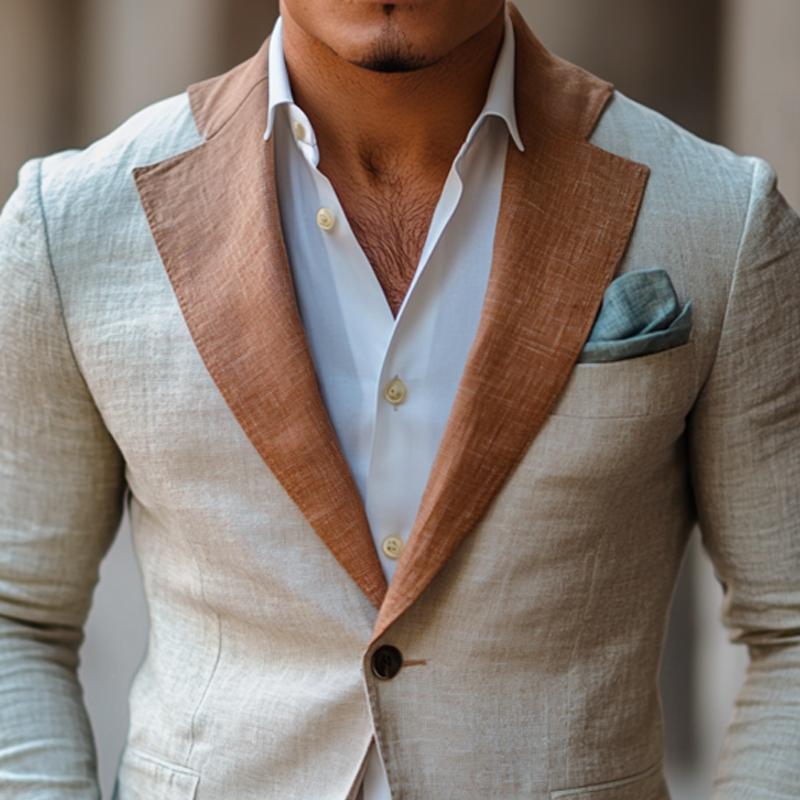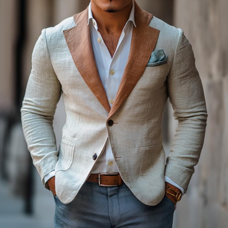 Product Name: Men's Fashion Colorblock Linen Notch Lapel Two Buttons Blazer