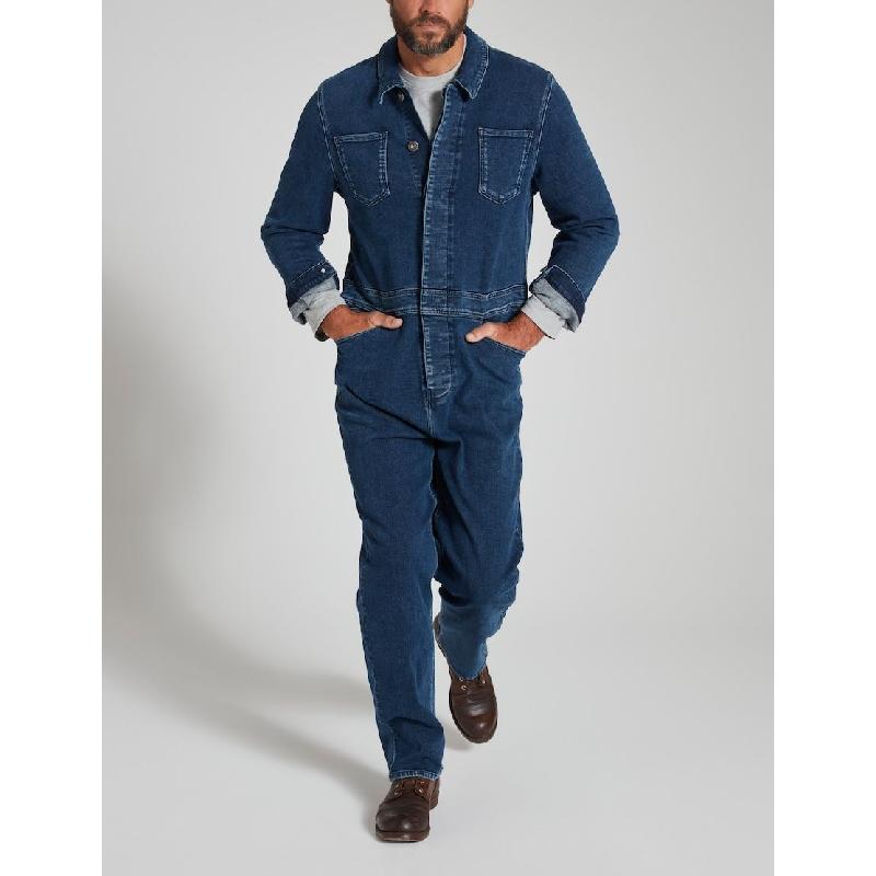 - Solid Color Denim: The jumpsuit comes in a solid denim color with subtle distressed details for a modern, vintage-inspired look.