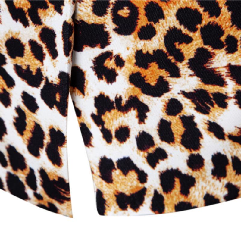 The Men's Fashion Leopard Print Single-Breasted Slim Fit Blazer is a bold statement piece that combines classic tailoring with a daring, modern twist. Ideal for those who want to stand out, this blazer features a striking leopard print pattern on a slim-fit silhouette, making it perfect for special occasions, stylish events, or a night out. With its refined construction and eye-catching design, it’s sure to elevate any outfit with a touch of sophistication and edge.