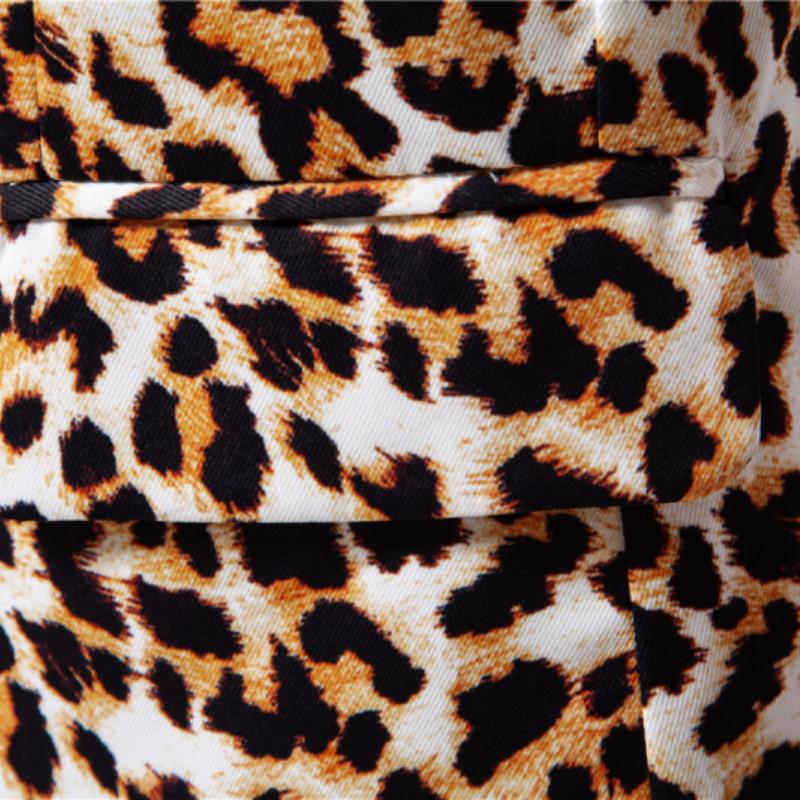 This blazer is adorned with a vibrant and stylish leopard print pattern, adding a unique, fashion-forward element to your wardrobe. The print adds a hint of wild sophistication, perfect for those who aren’t afraid to make a statement.