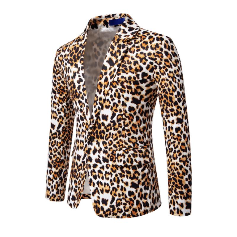 Men's Fashion Leopard Print Single-Breasted Slim Fit Blazer