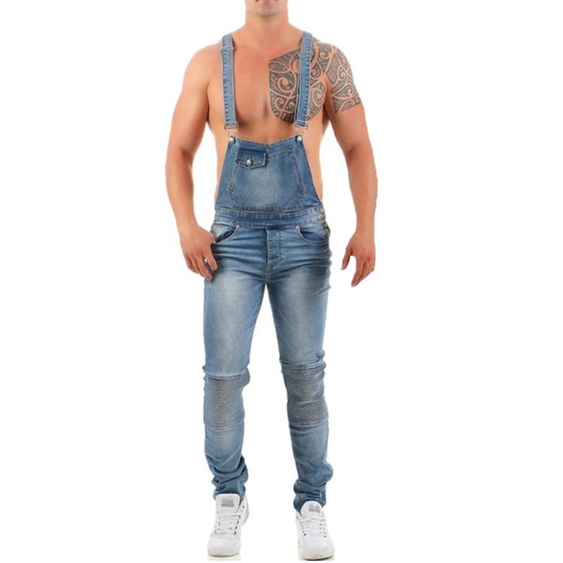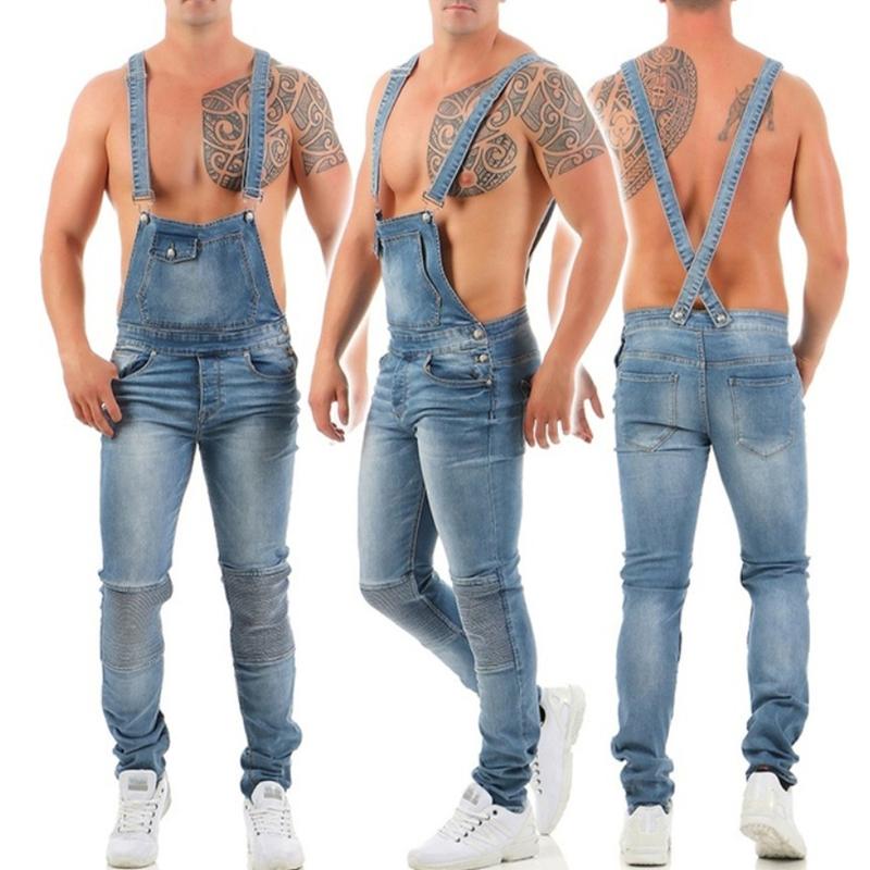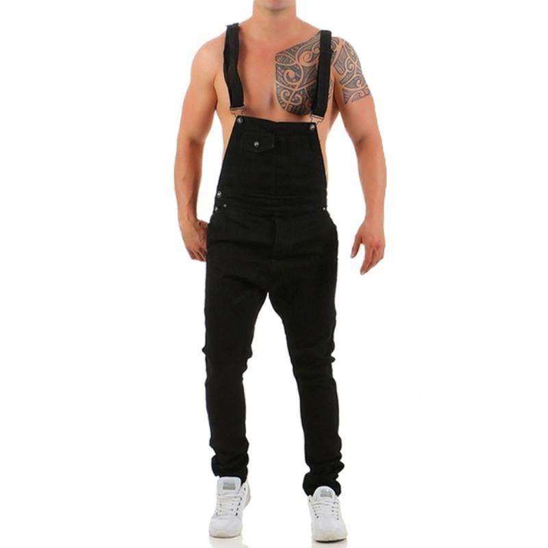 Men's Fashion Solid Color Ripped Denim Overalls 39074979Y