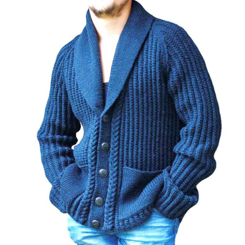 Men's Lapel Long Sleeve Loose Knit Cardigan 45342754M