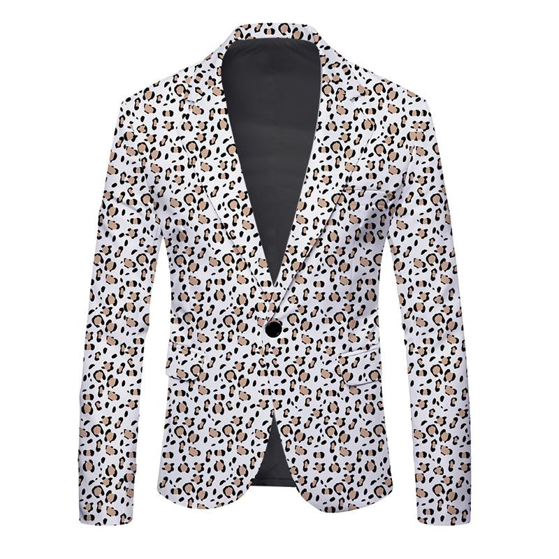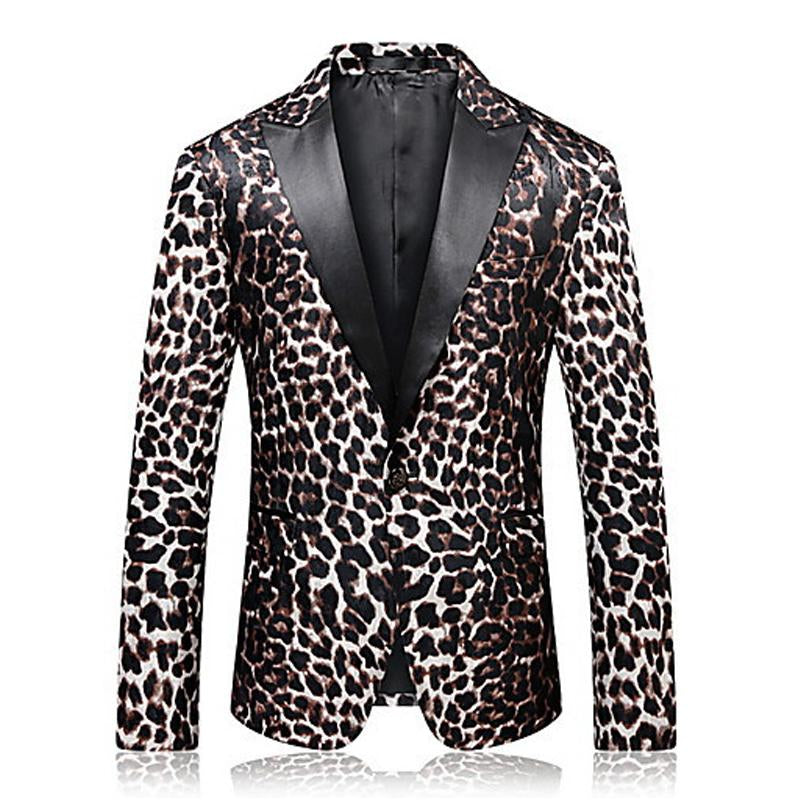 Add a touch of boldness to your wardrobe with our Men's Leopard Print Single Button Blazer. Crafted from a comfortable polyester blend, it features a classic notched lapel and long sleeves. Available in striking leopard print with shades of brown and black, this blazer is perfect for making a stylish statement. Choose from a range of sizes to find your perfect fit.