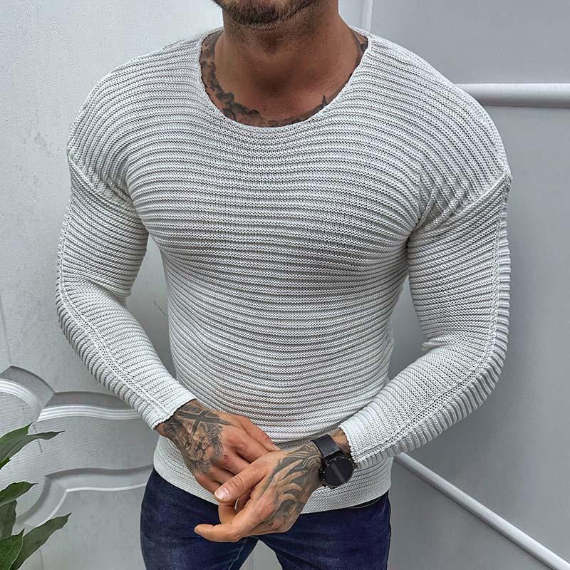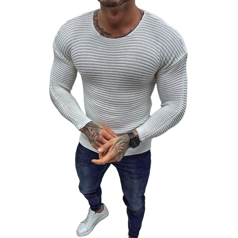 Men's Solid Color Long Sleeve Round Neck Pullover Knitted Sweater