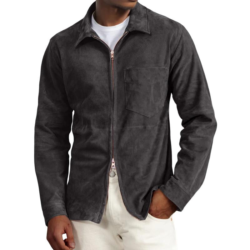 Men's Solid Suede Lapel Chest Pocket Jacket