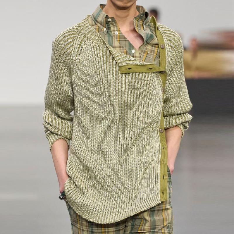 Product Name: Men's Vintage Button Slanted Placket Round Neck Knit Sweater