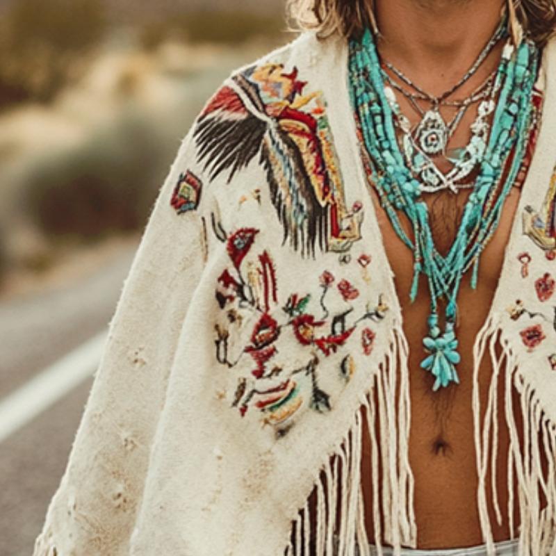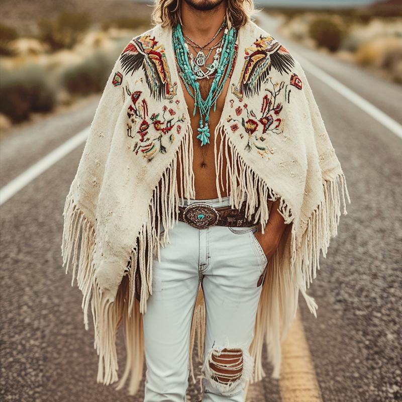 Description: The Men's Vintage Casual Linen Eagle Feather Embroidered Cape is a unique and stylish piece that effortlessly blends comfort and flair. Perfect for casual outings or relaxed gatherings, this cape is designed to make a statement while offering maximum wearability.