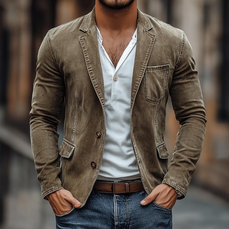 Product Name: Men's Vintage Cotton Washed Notch Lapel Two Buttons Casual Blazer