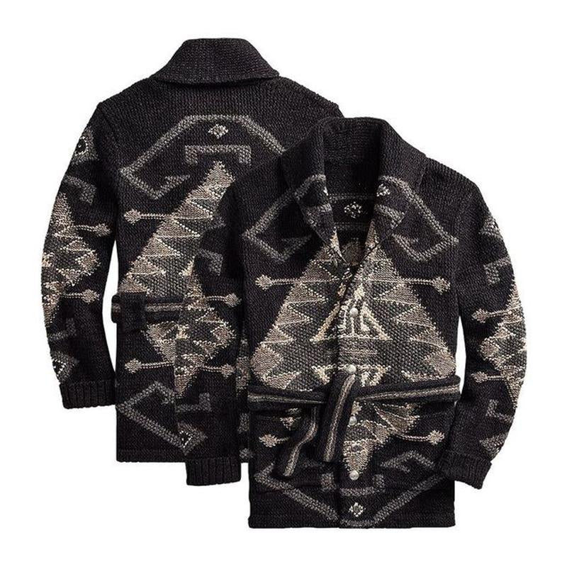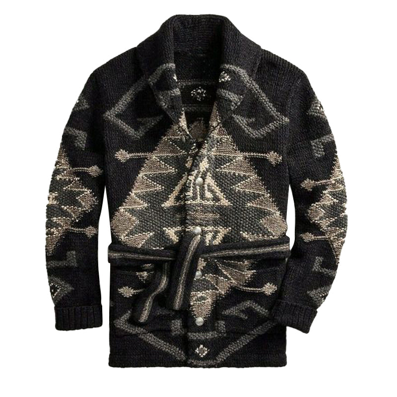 Whether paired with casual pants or jeans, this Men's Vintage Jacquard Shawl Collar Belted Mid-Length Cardigan effortlessly showcases your taste and charisma.