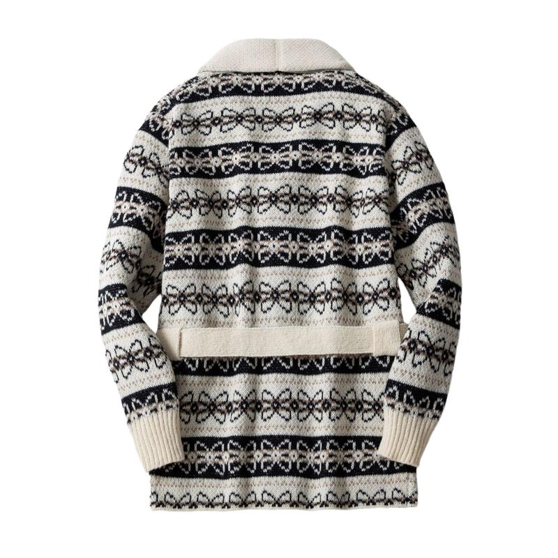 Men's Vintage Jacquard Thick Lapel Belt Mid-Length Knitted Cardigan 32711449M