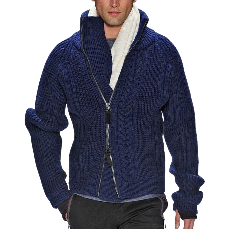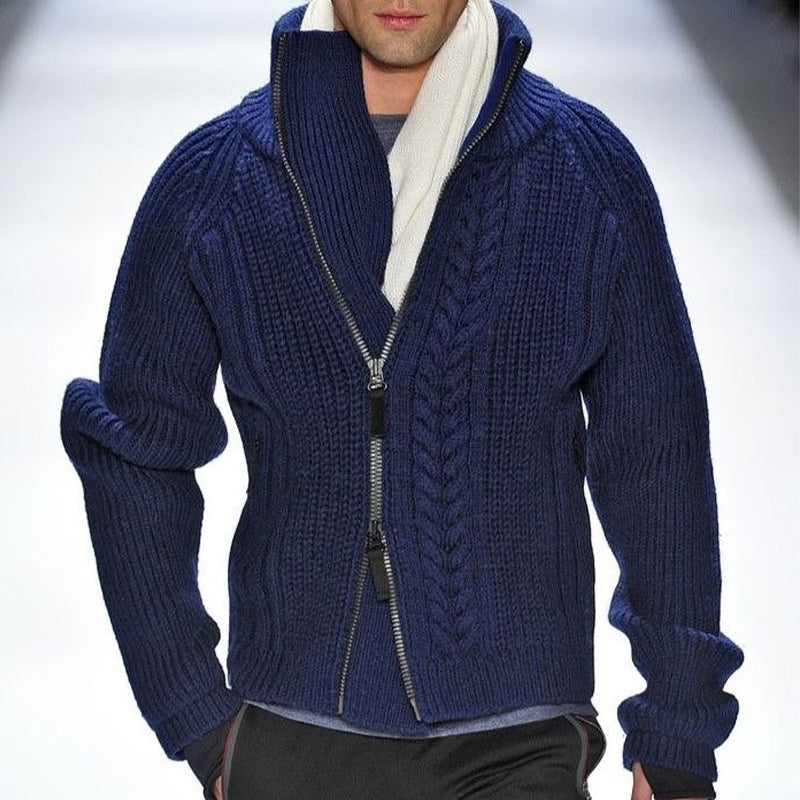 Product Name: Men's Vintage Navy Stand Collar Zipper Knit Sweater