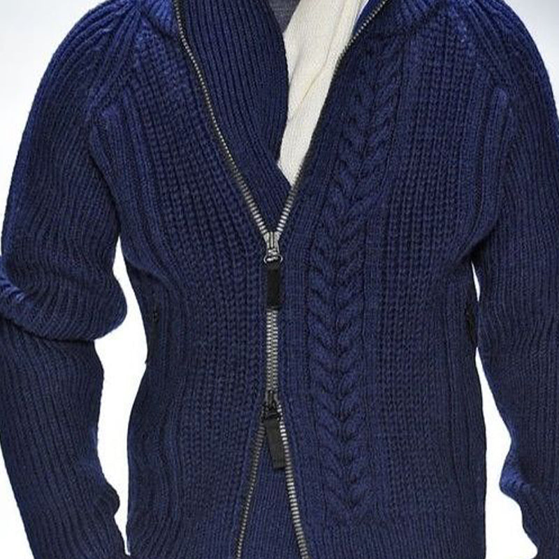 Description: Add a touch of timeless elegance to your wardrobe with the Men's Vintage Navy Stand Collar Zipper Knit Sweater. This sweater seamlessly combines vintage charm with modern functionality, making it a versatile piece for any season.