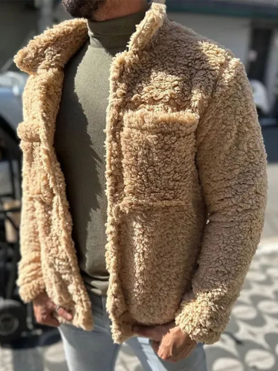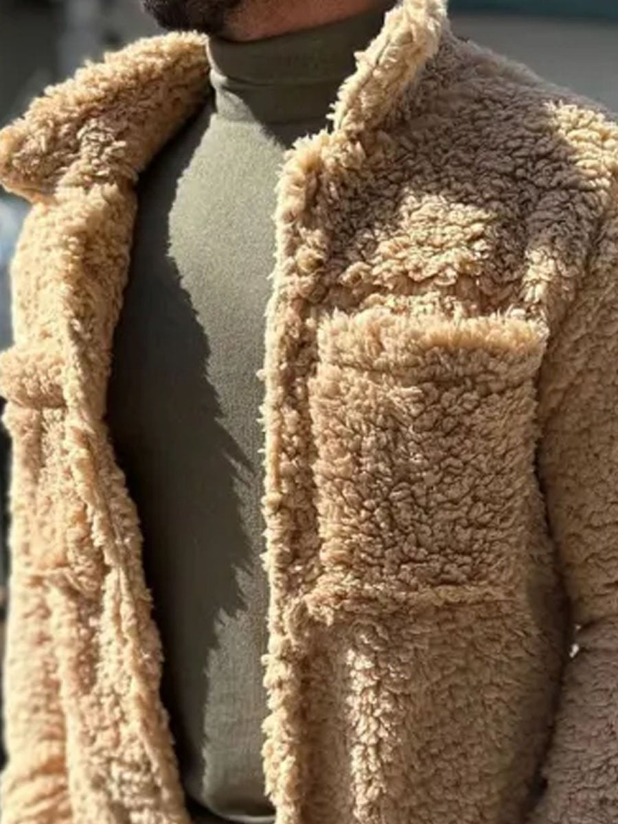 Sherpa Double-Pocket Single-Breasted Lapel Thermal Coat